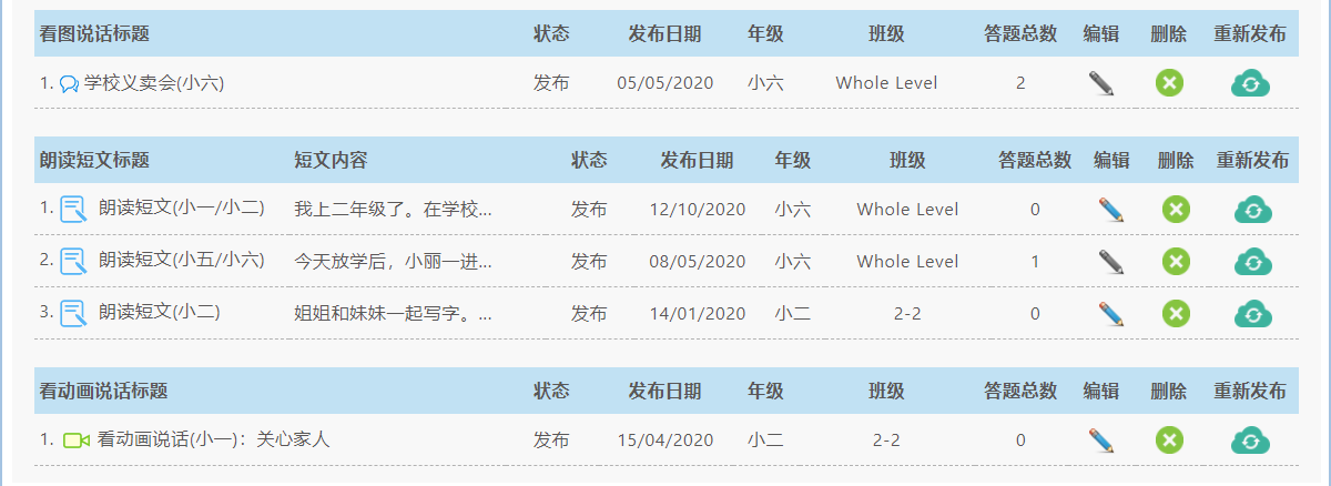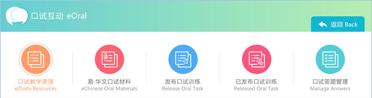 eOral Interactive Practice Portal is specially developed in accordance with Singapore Primary 1 to 6 Chinese Oral practices needs and latest Oral examination requirements. It provides a large number of oral practice resources, including read aloud passages, picture conversation, video clips for video conversation, animation clips, prompts and reference answers, teacher teaching PPT and recordings of reference answers to cater for needs for differentiated and customised oral teaching and practice. eOral helps teachers to solve the problem of insufficient supplementary teaching materials for oral examinations and save on the time spent on sourcing for suitable teaching materials and avoid copyright infringement.