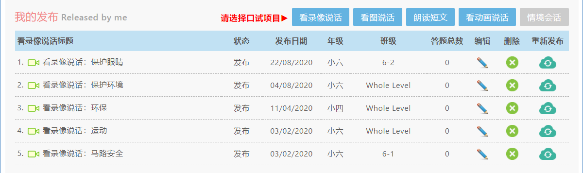 eOral口语资源与互动练习平台,为老师提供一个方便、高效的口试教学应用平台。老师在线发布各类题型的口试练习给学生,在线管理学生录音或文本答题,并针对学生的答题做出评估。