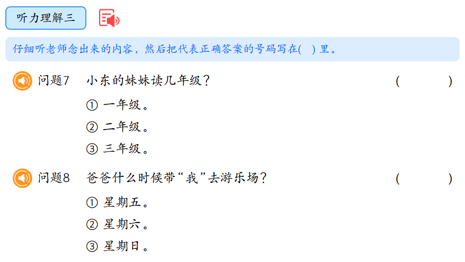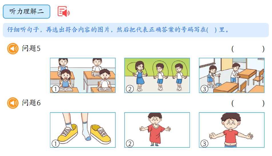 eListening Comprehensions practices are grouped and differentiated according to question types for each level.